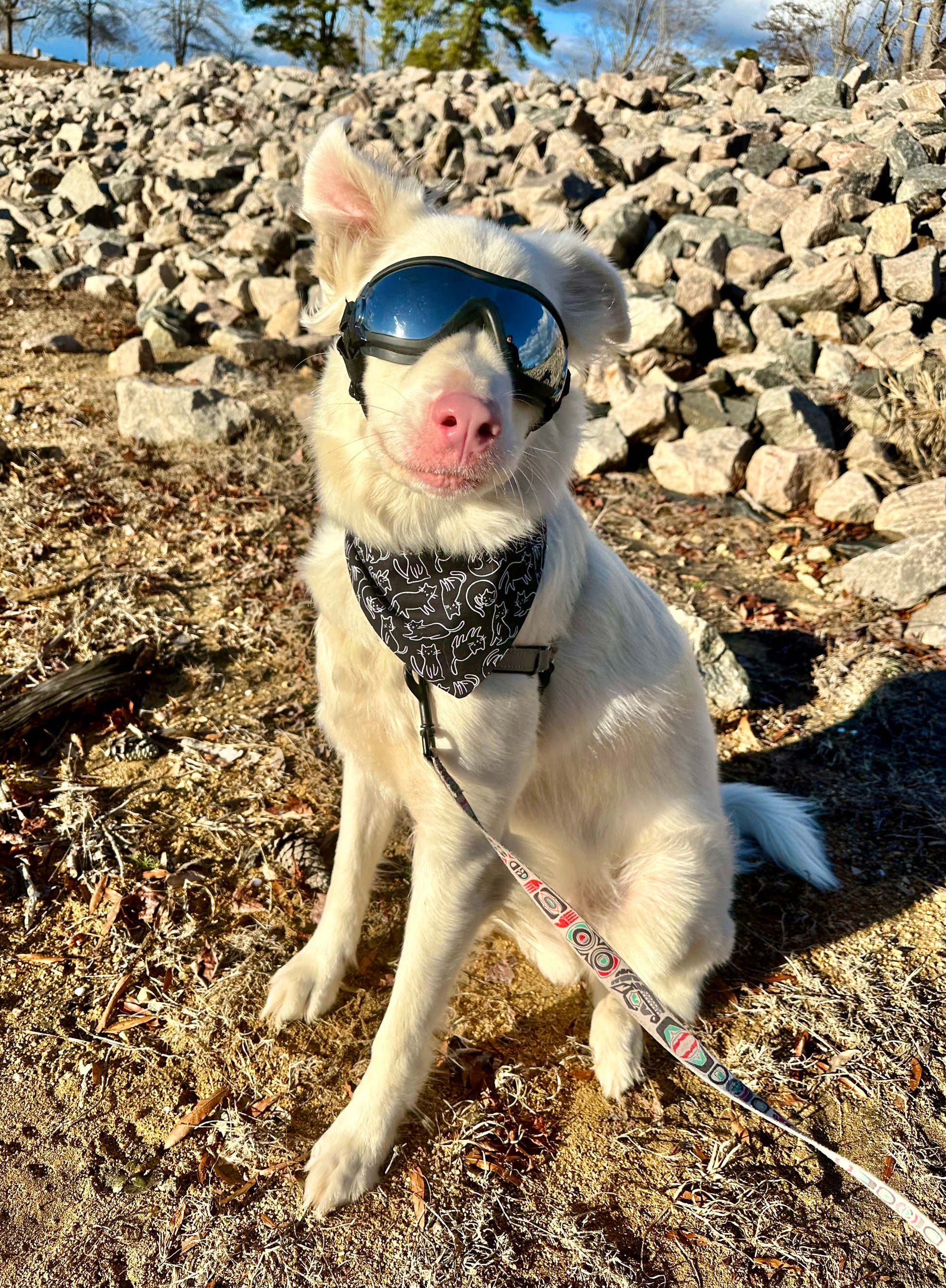 Pictured: Everest (60 lbs.) wearing a medium bandana