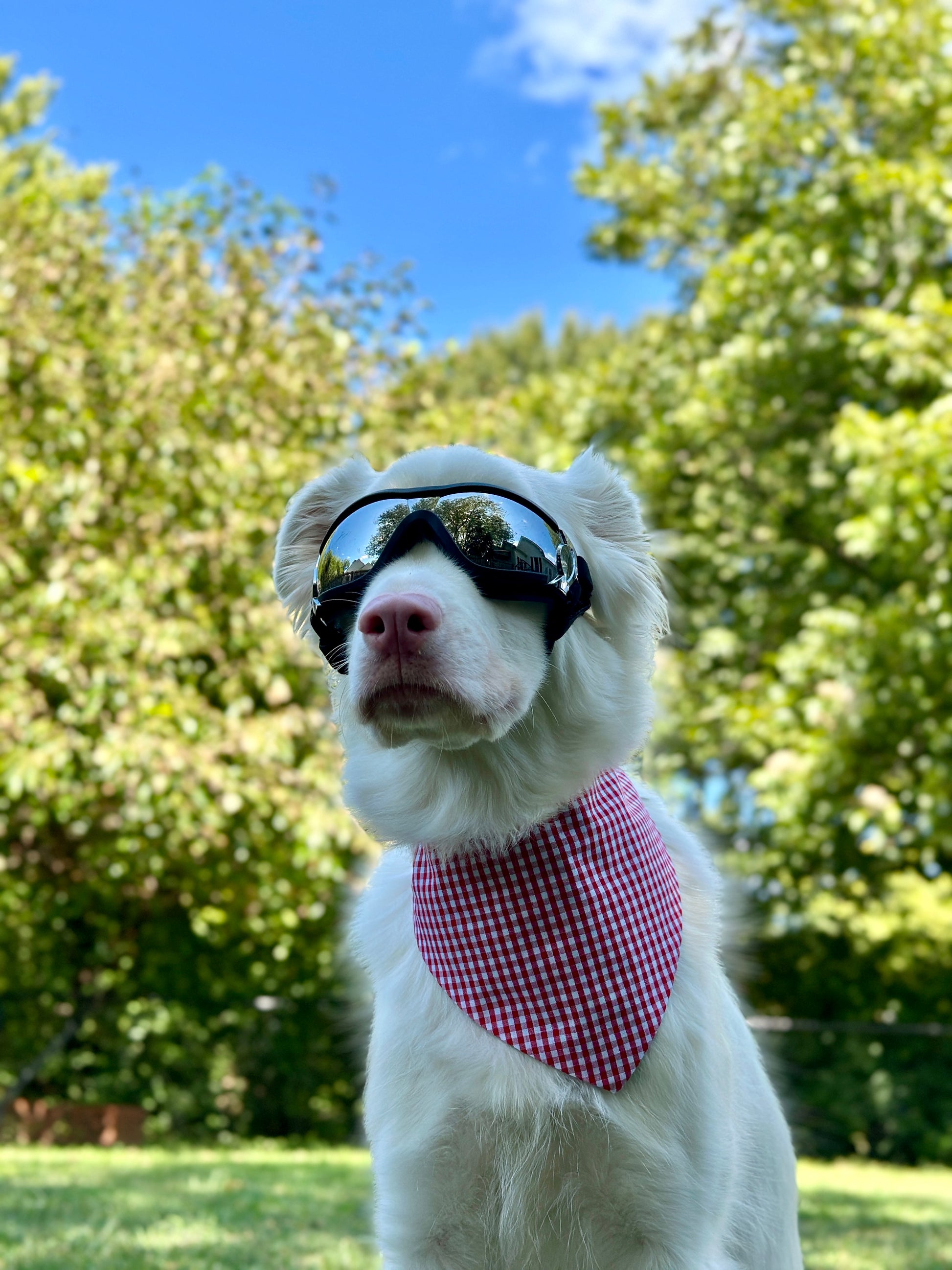 Pictured: Everest (60 lbs.) wearing a medium bandana