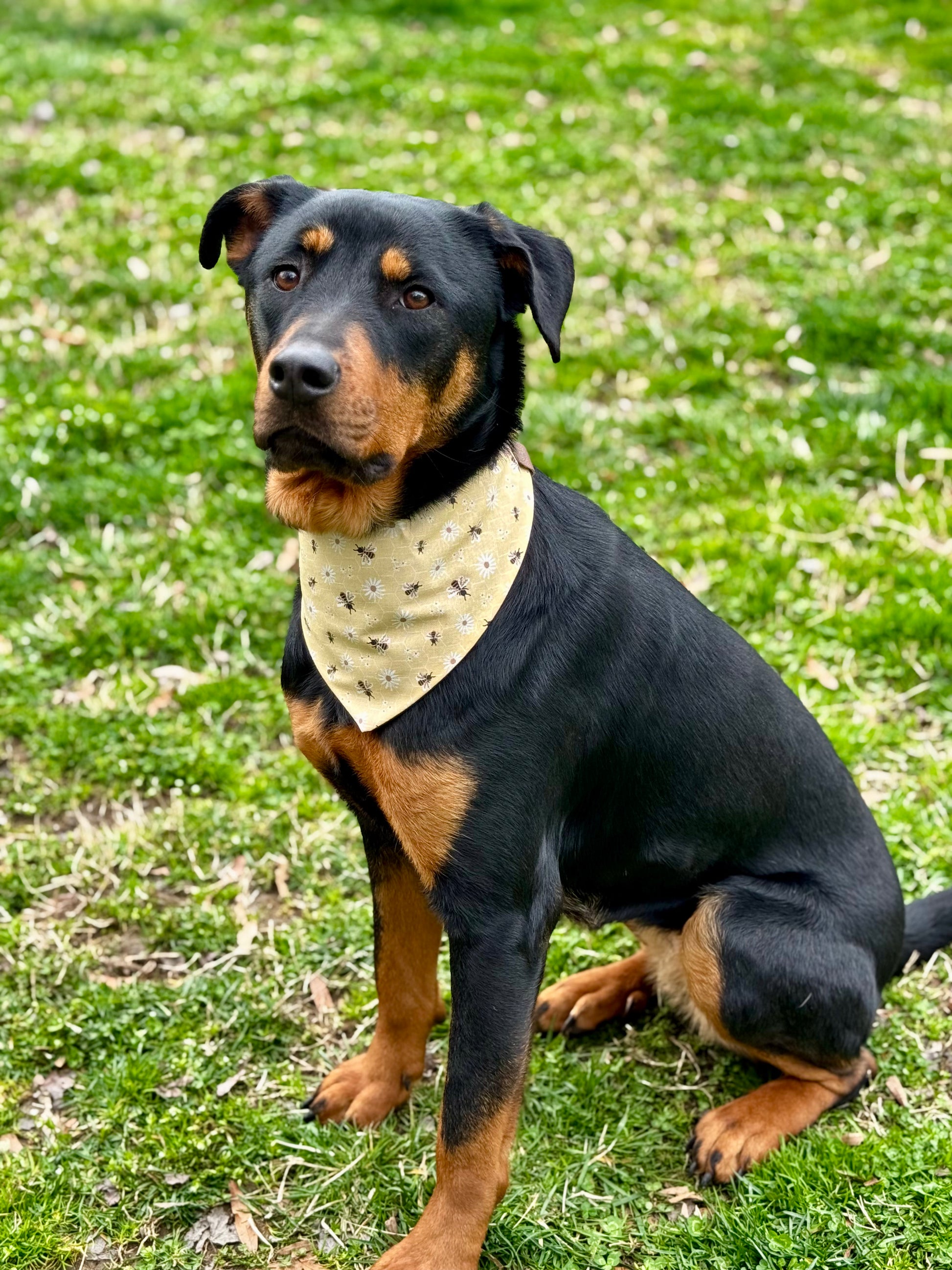 Pictured: Denali (55 lbs.) wearing a medium bandana