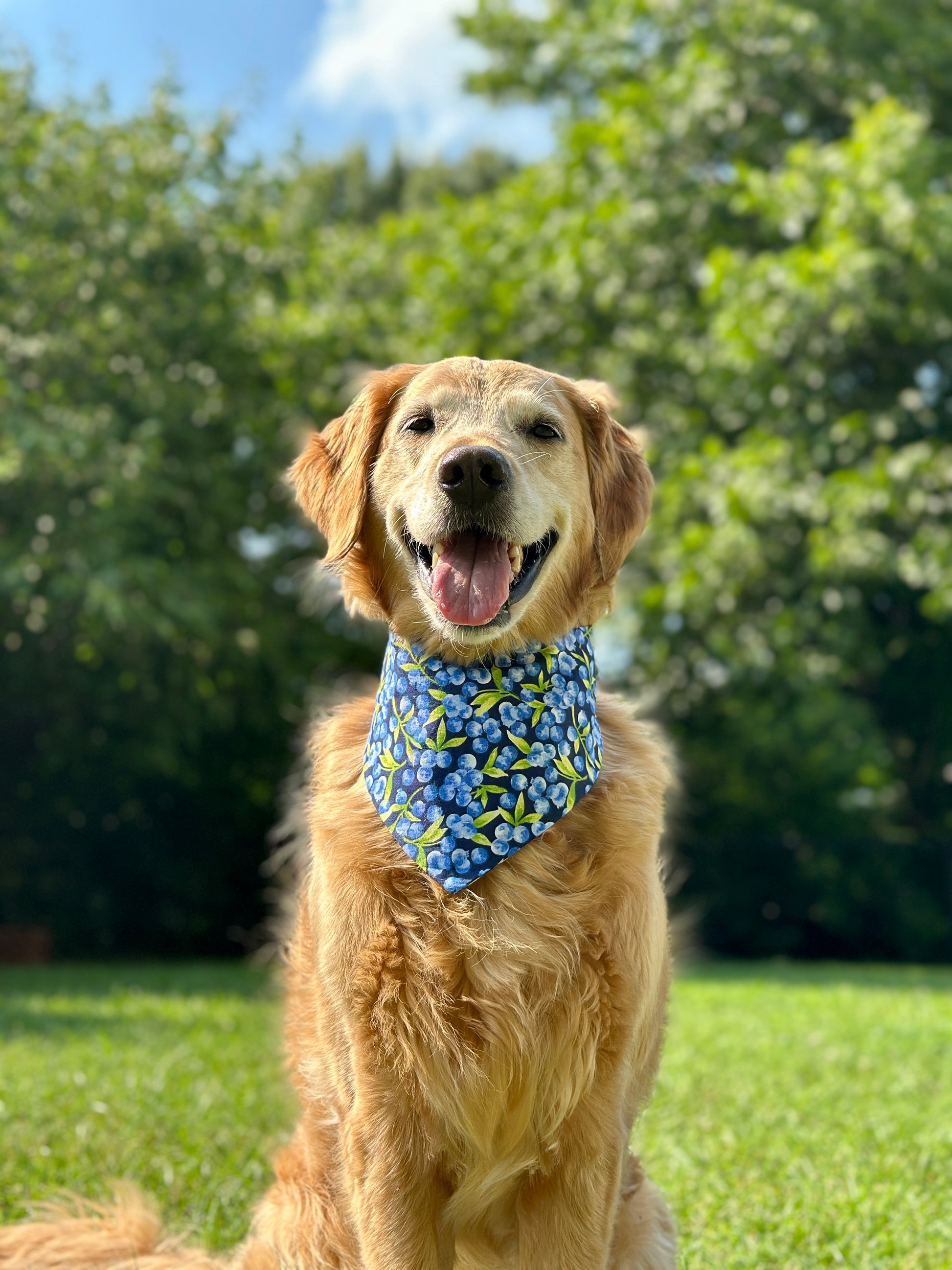 Add a touch of nature’s sweetness with the Blueberry Vine pet bandana! Adorned with charming blueberry motifs set against a lively field pattern, this playful accessory brings fresh, fruity vibes to your pet’s everyday adventures. Perfect for pets who love a pop of color and a hint of whimsy!