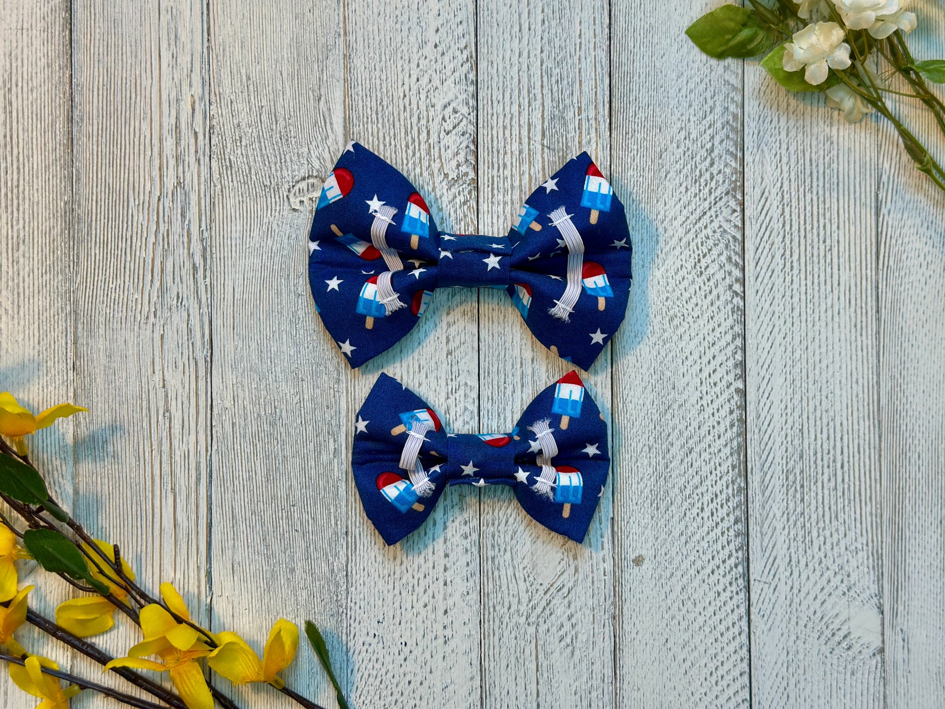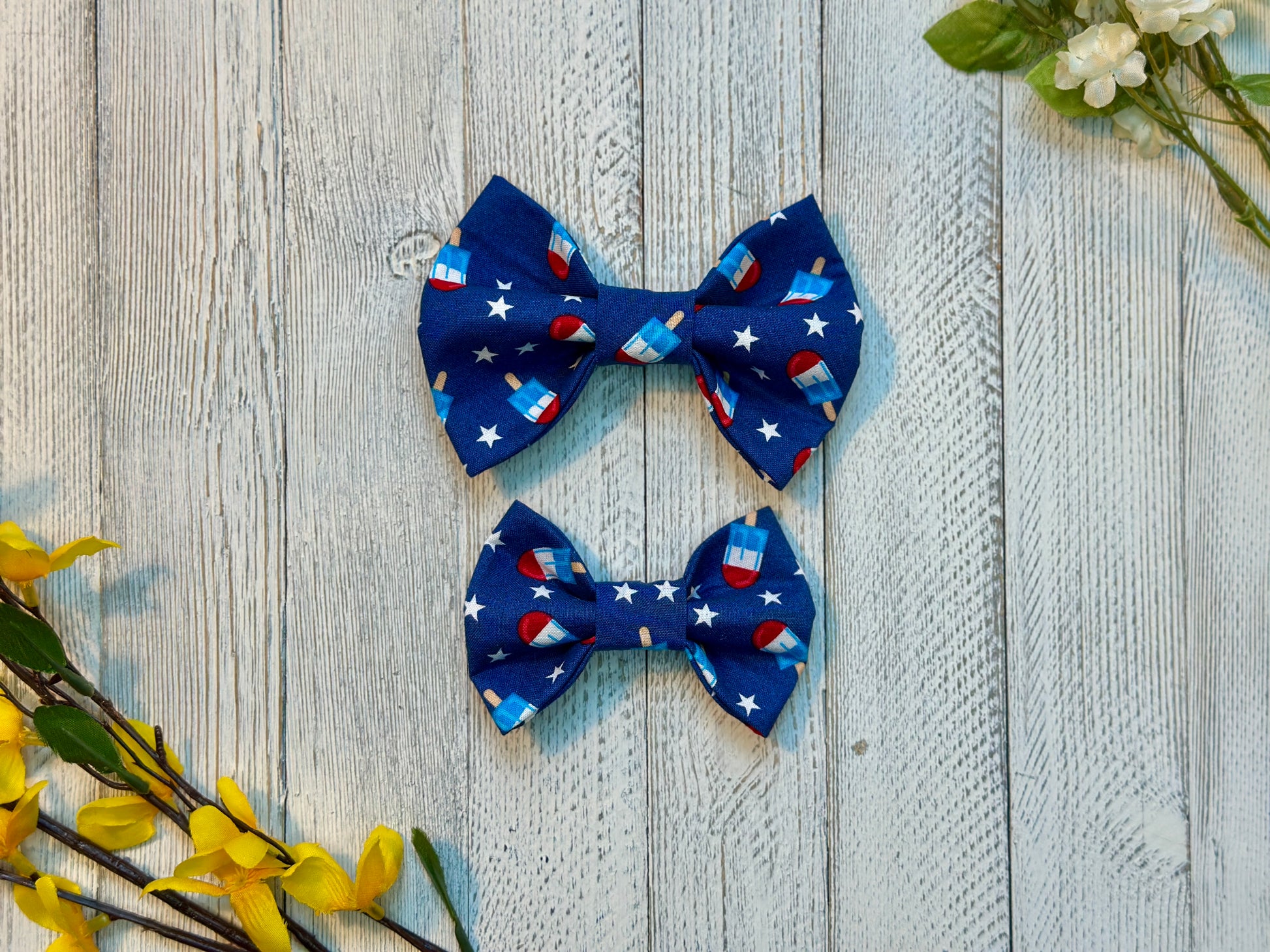 Give your pet a fun and festive look with the Bomb Pop Slip-on Bow Tie. Featuring bright red, white, and blue colors inspired by the classic popsicle, this playful accessory is perfect for summer parties and patriotic celebrations. Easy to slip on, it adds a cheerful pop of color to your furry friend’s style.