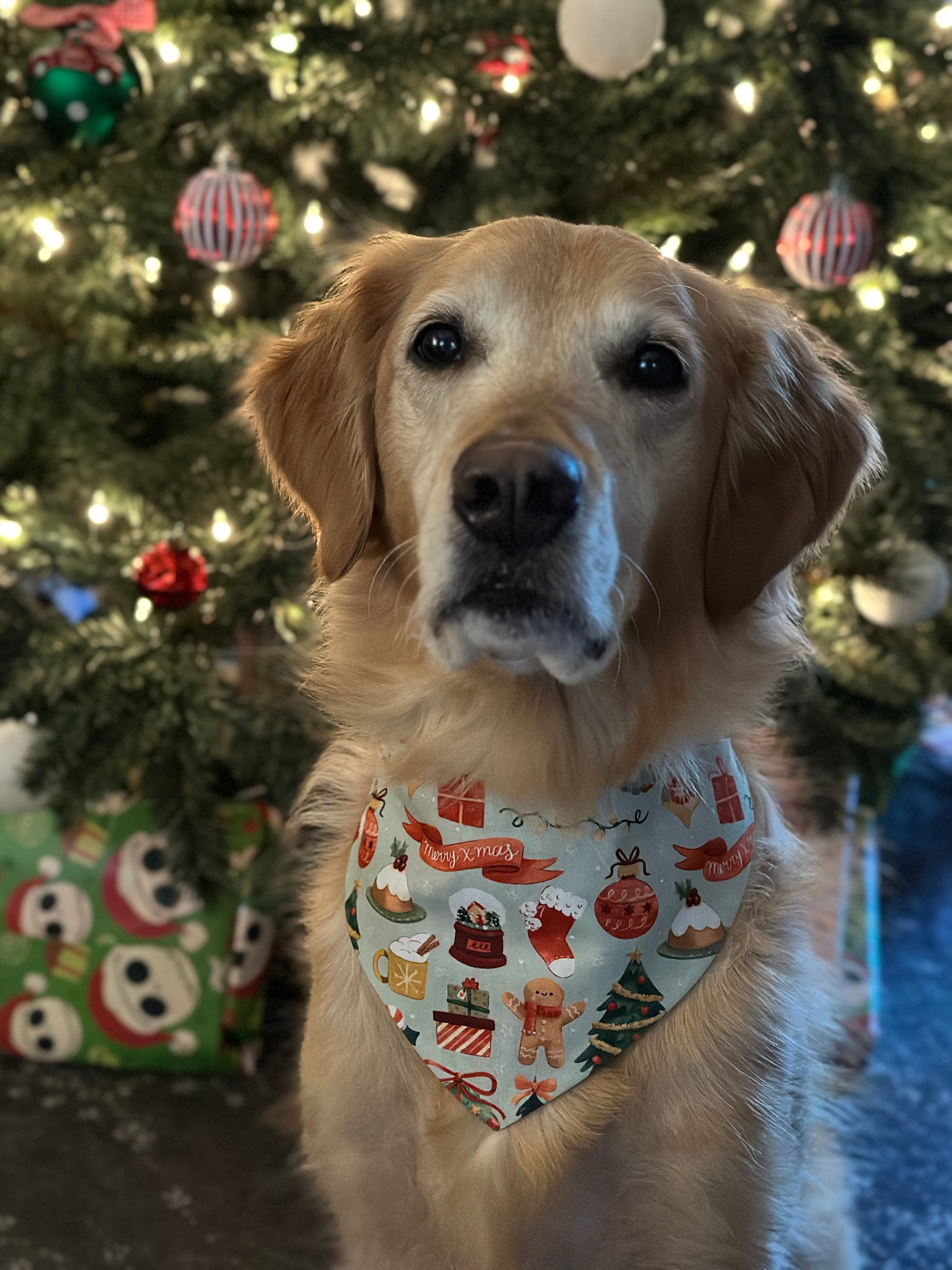 Transform your furry friend into a holiday vision with our Cozy Holidays Pet Bandana. Made of comfortable cotton fabric, this scrunchie bandana features double-sided designs of old timey holidays and classic holiday treats like hot coco, gingerbread men, and Christmas trees galore. Perfect for filling your pet's stocking this holiday season.