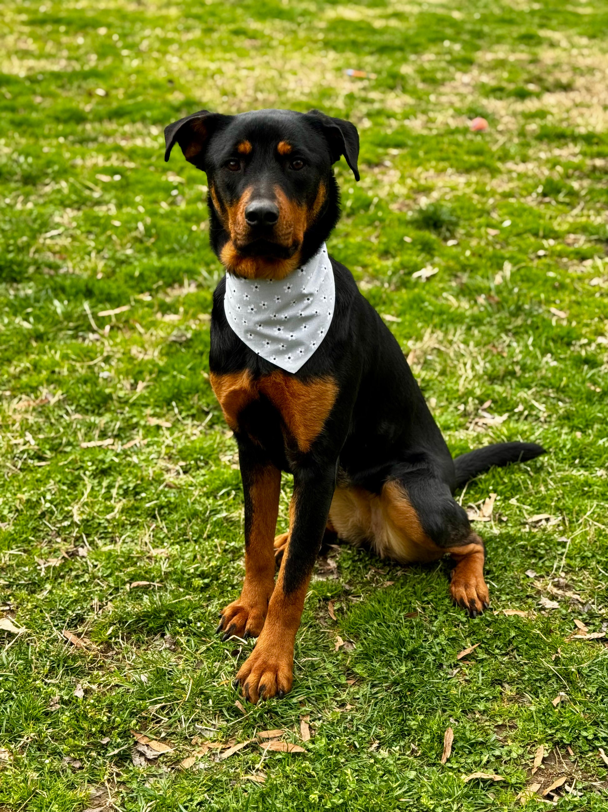 Pictured: Denali (55 lbs.) wearing a medium bandana