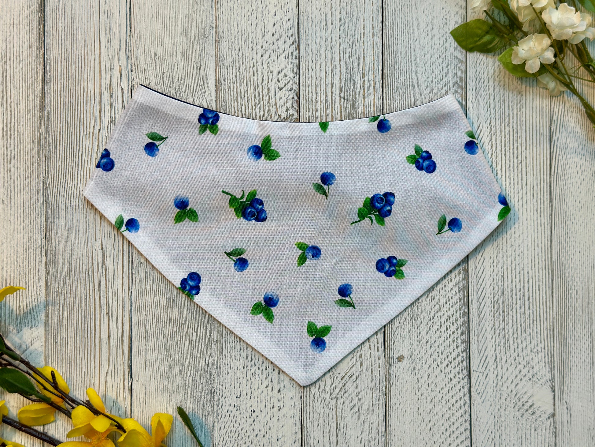 Dress your furry friend in the delightful Field of Blueberries pet bandana! Featuring a fun blueberry pattern, this playful accessory adds a burst of color and charm to any pet’s look. Soft and easy to wear, it’s perfect for pets who love a little fruity flair during walks or playtime.
