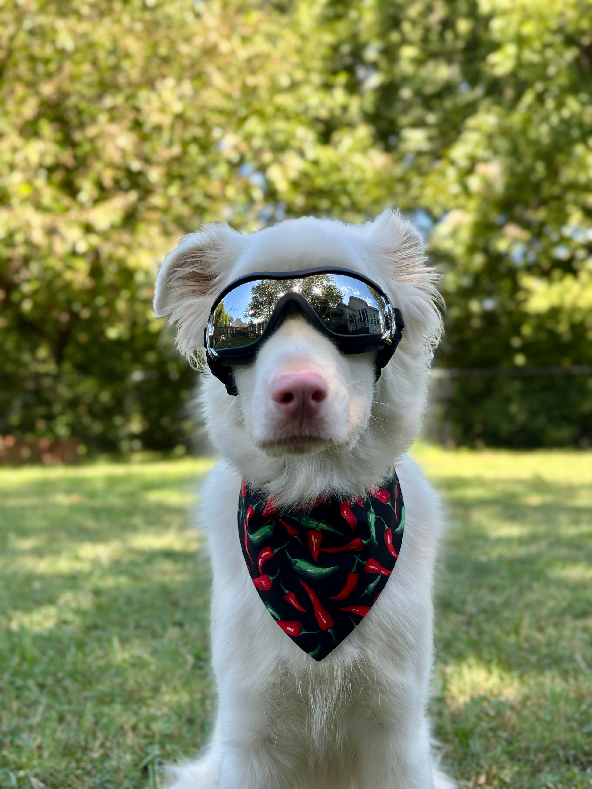 Pictured: Everest (60 lbs.) wearing a medium bandana