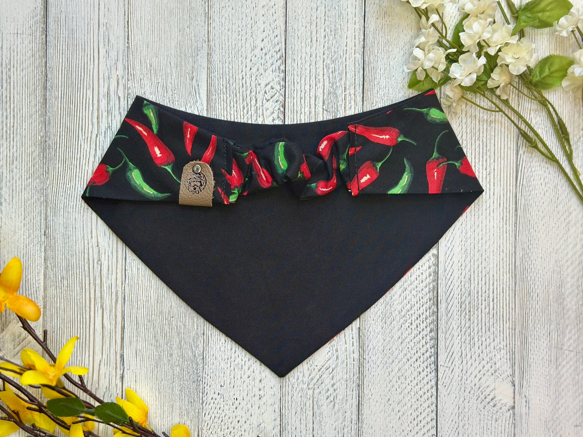 Turn up the heat with the Chili Peppers pet bandana! Featuring vibrant red and green peppers, this spicy accessory adds a zesty pop to your pet’s wardrobe. Perfect for playful pups who like to bring the heat wherever they go.