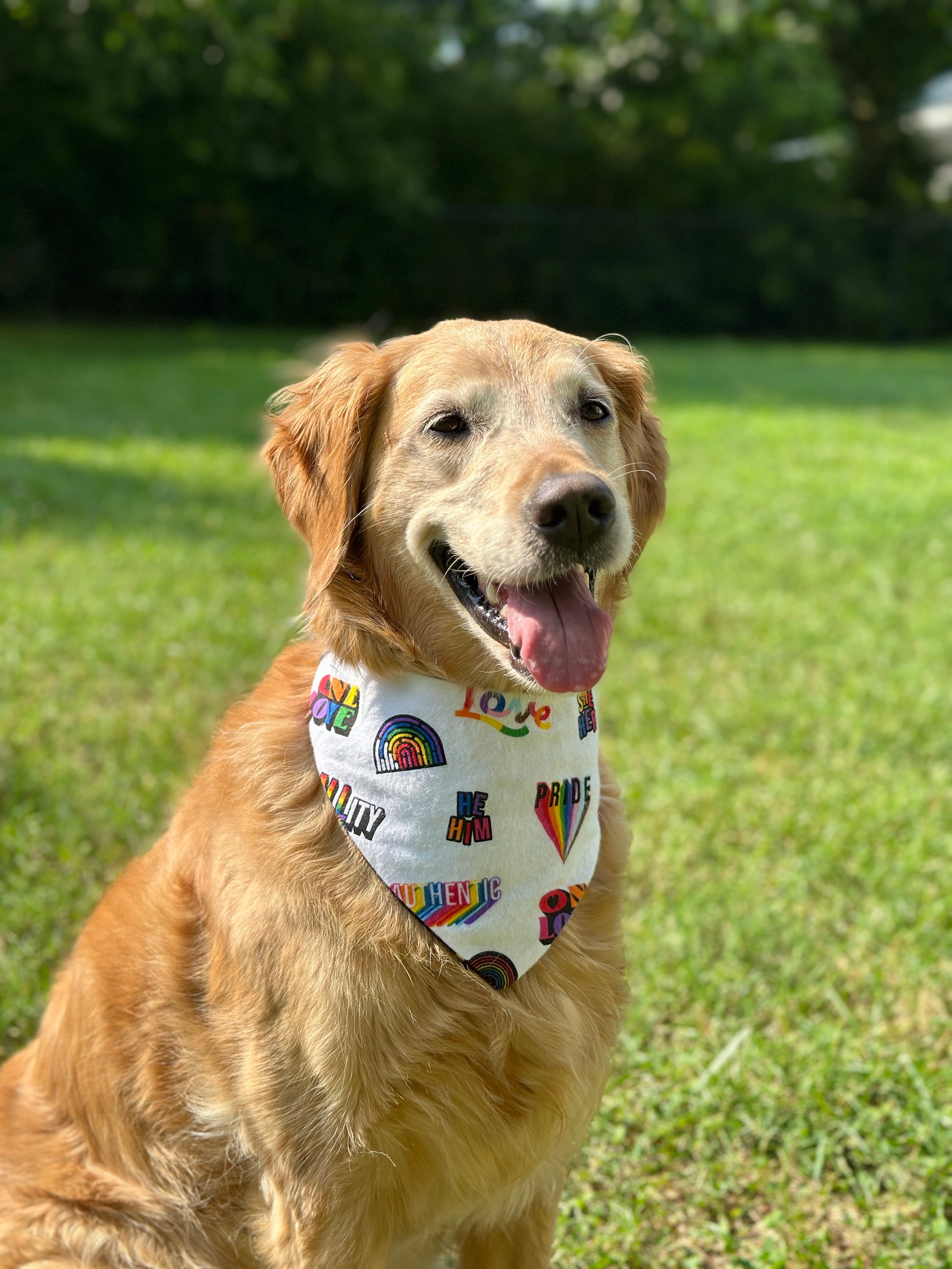 Pictured: Ellie (60 lbs.) wearing a medium bandana