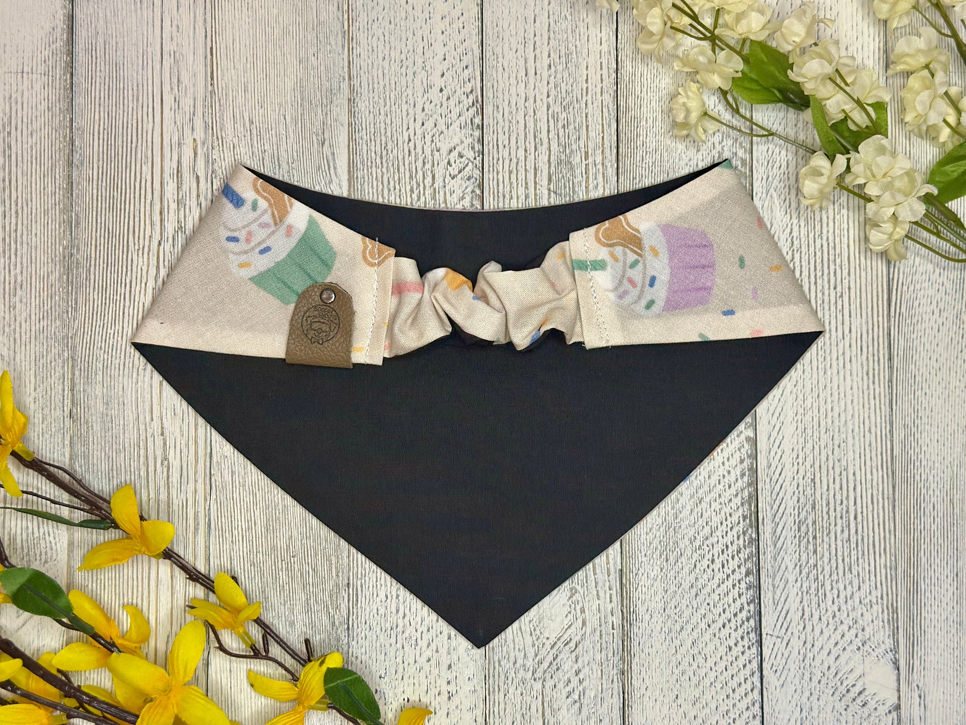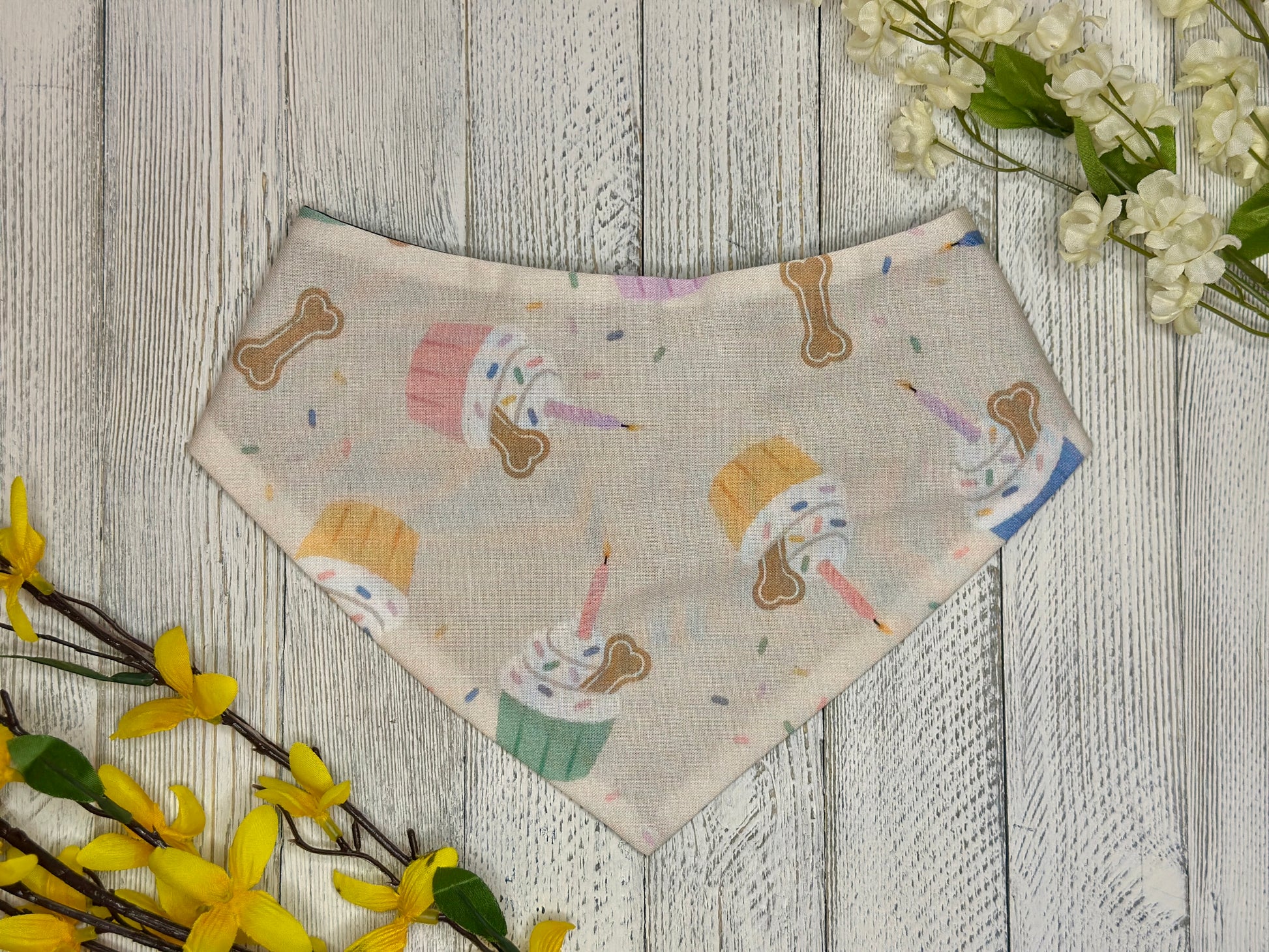 Celebrate your pets big day with our Birthday Cupcakes bandana! Made from soft cotton material, this slip-on or scrunchie bandana will keep your fur baby looking cute and stylish. Spoil your pet and make them feel extra special on their big day! it is their Barkday after all!