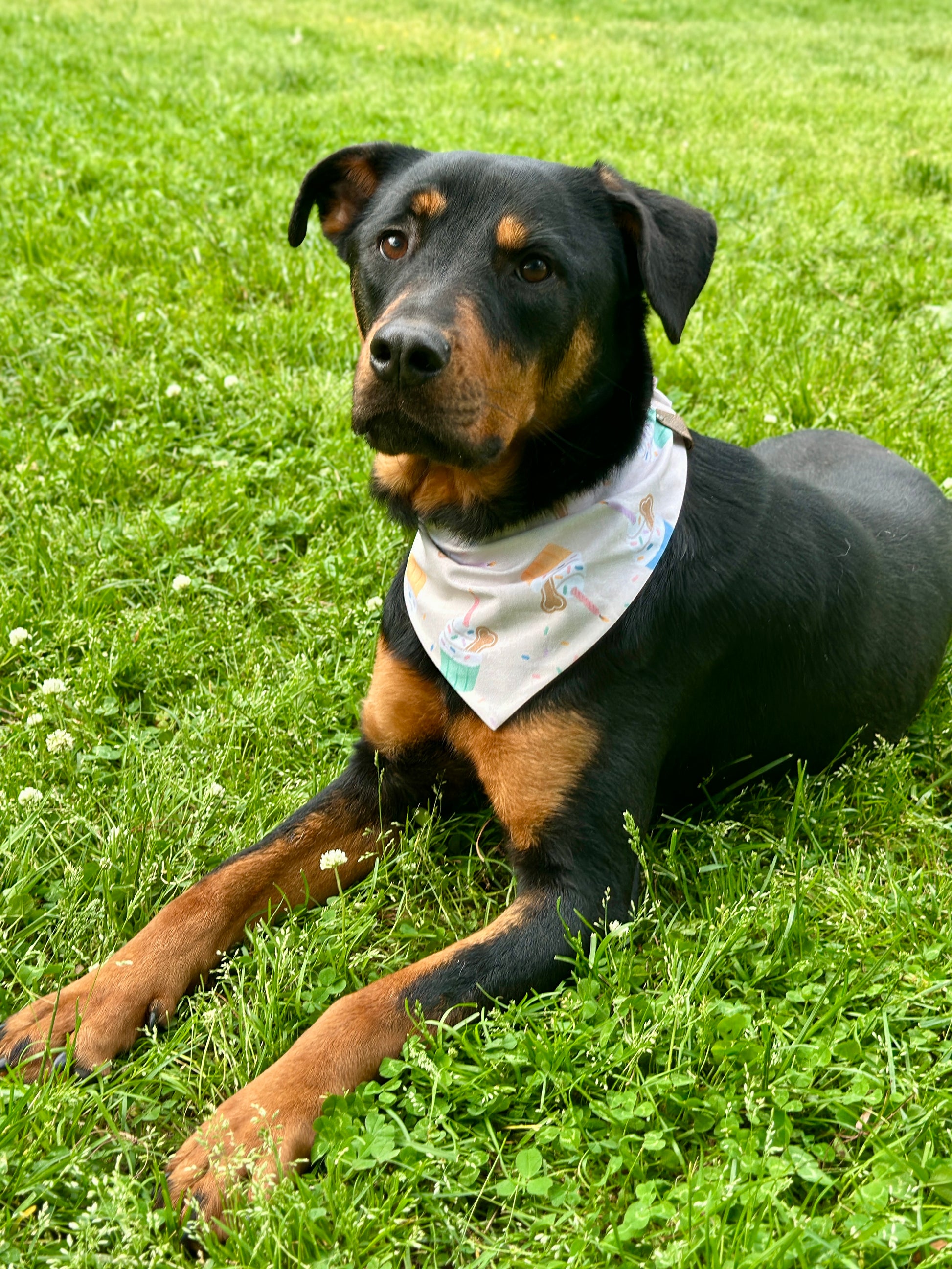 Pictured: Denali (55 lbs.) wearing a medium bandana