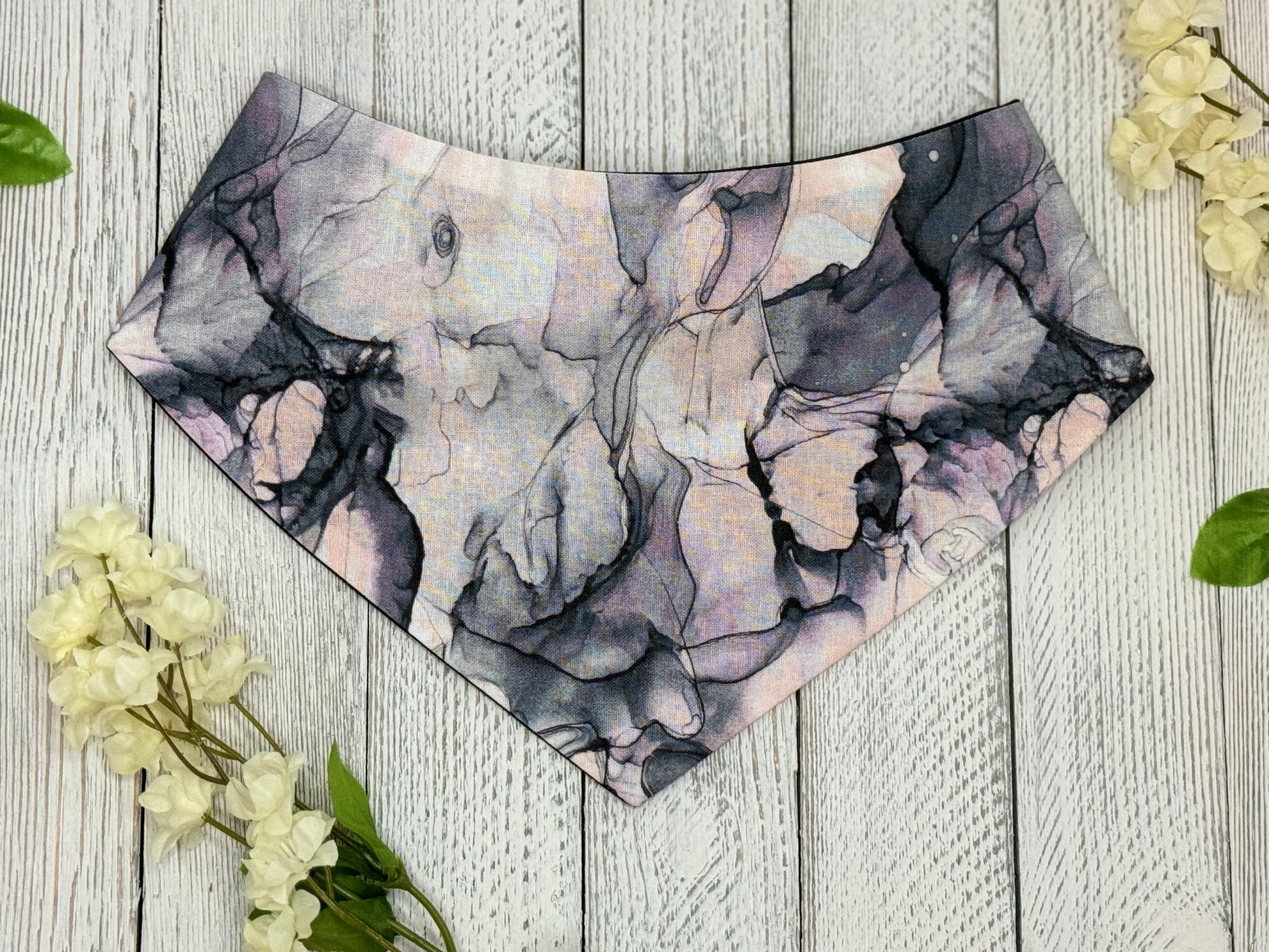 This handmade pet bandana is not your ordinary accessory. With its scrunchie design, it adds a unique touch to your pet's style. The Purple Haze color combination is not only beautiful, but will also make your pet stand out. Show off your pet's fashion with this one-of-a-kind bandana!