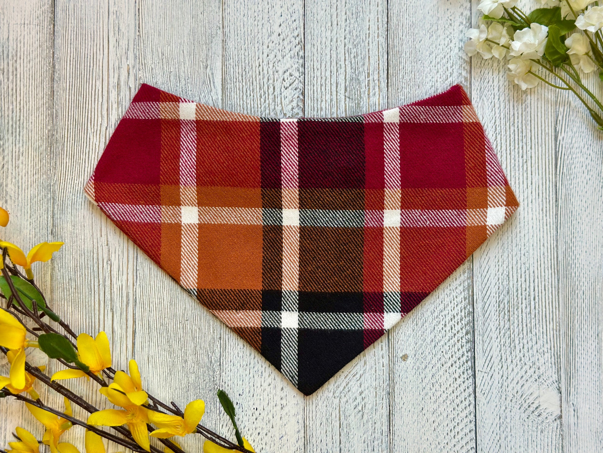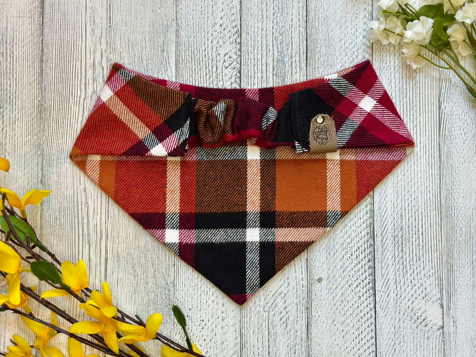 Dress your furry friend in rustic charm with the Ruff & Timber pet bandana. Featuring a cozy red and orange plaid pattern inspired by classic lumberjack style, it adds a playful woodland flair to any outing. Perfect for pets who love adventure or simply want to boop snoots in style!