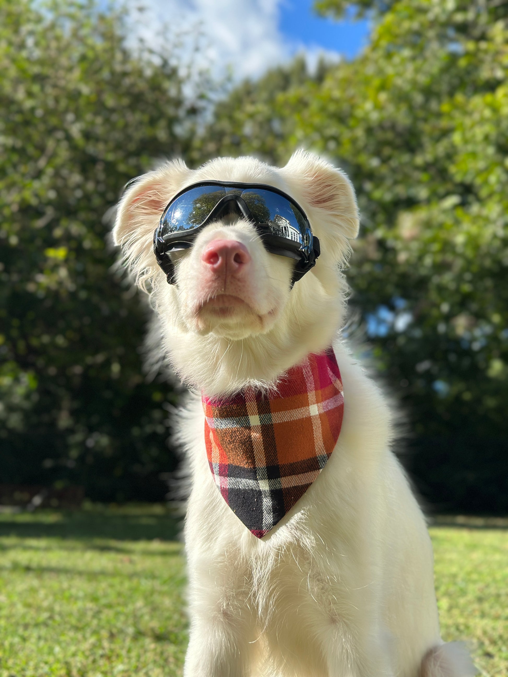 Pictured: Everest (60 lbs.) wearing a medium bandana
