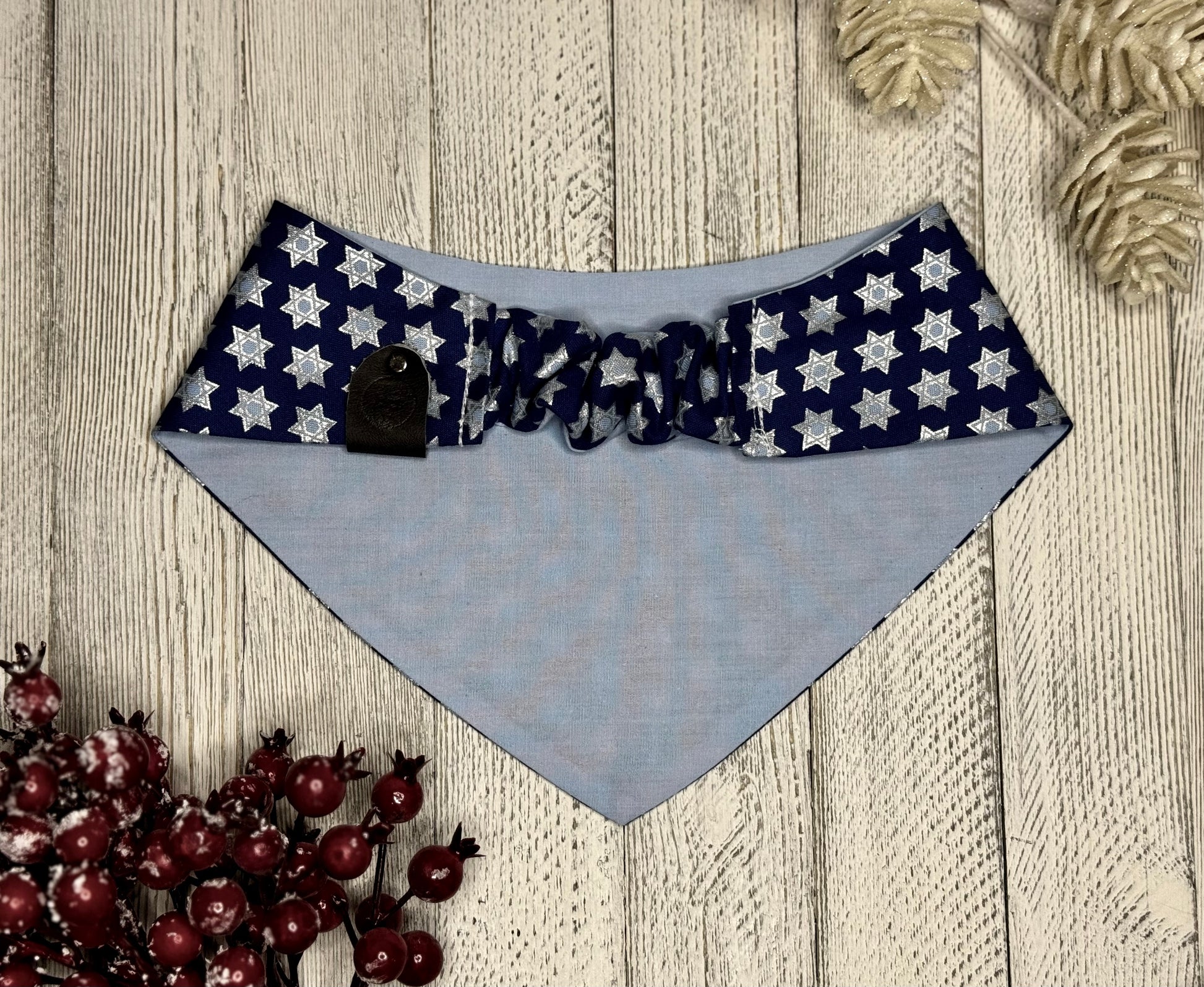 Get your furry friend ready for any occasion with our Star of David Pet Bandana! Made from comfy cotton fabric, this scrunchie bandana adds a touch of cuteness to any outfit. Perfect for the season or everyday wear. Pawsitively adorable!