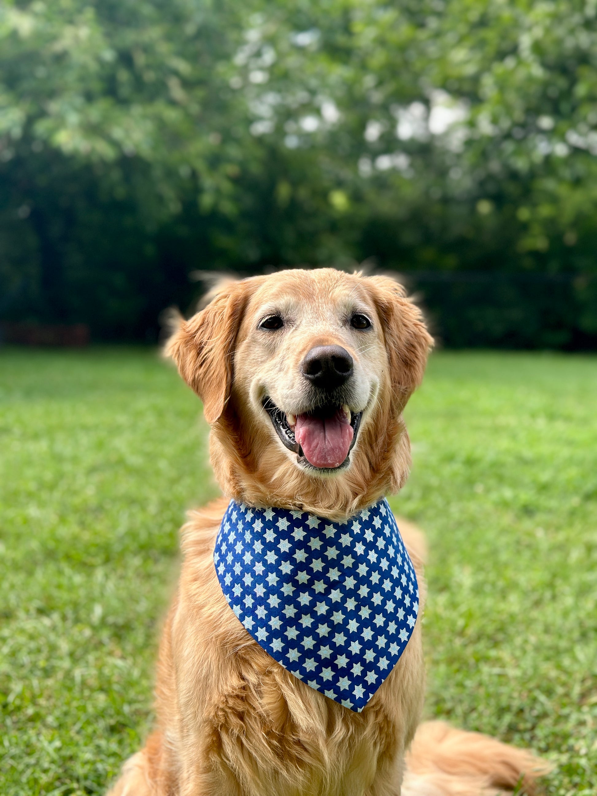 Pictured: Ellie (60 lbs.) wearing a large bandana