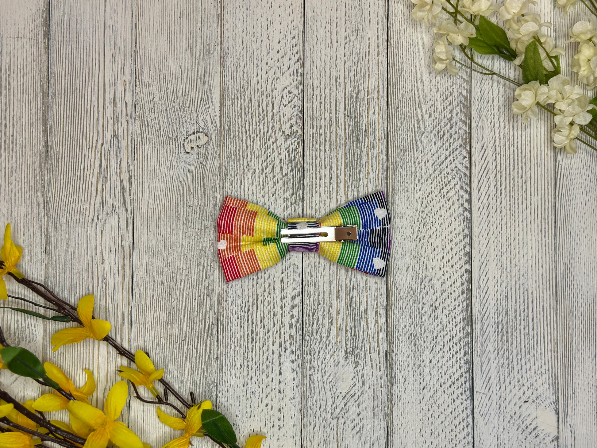 Striped Rainbow Clip-on Bow Tie