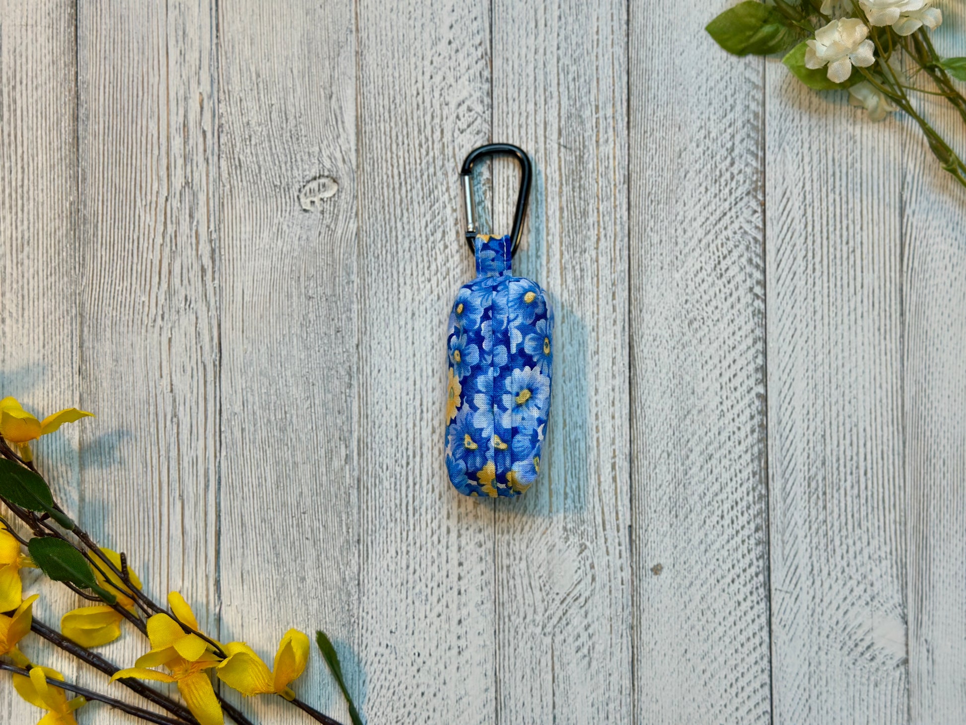 Presenting the Sunny Blooms poop bag holder. Add some fun to your walks with this playful and practical accessory. Keep your hands free and the neighborhood tidy! Featuring a vibrant blue and yellow floral design.(And you won't have to worry about carrying those pesky poop bags!)